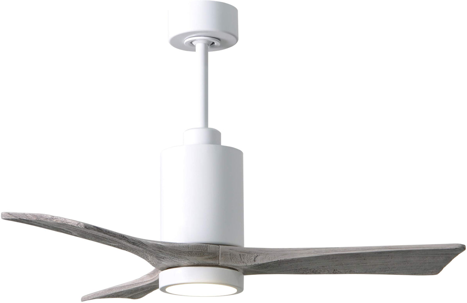 Matthews Fan PA3-WH-BW-42 Patricia-3 three-blade ceiling fan in Gloss White finish with 42” solid barn wood tone blades and dimmable LED light kit
