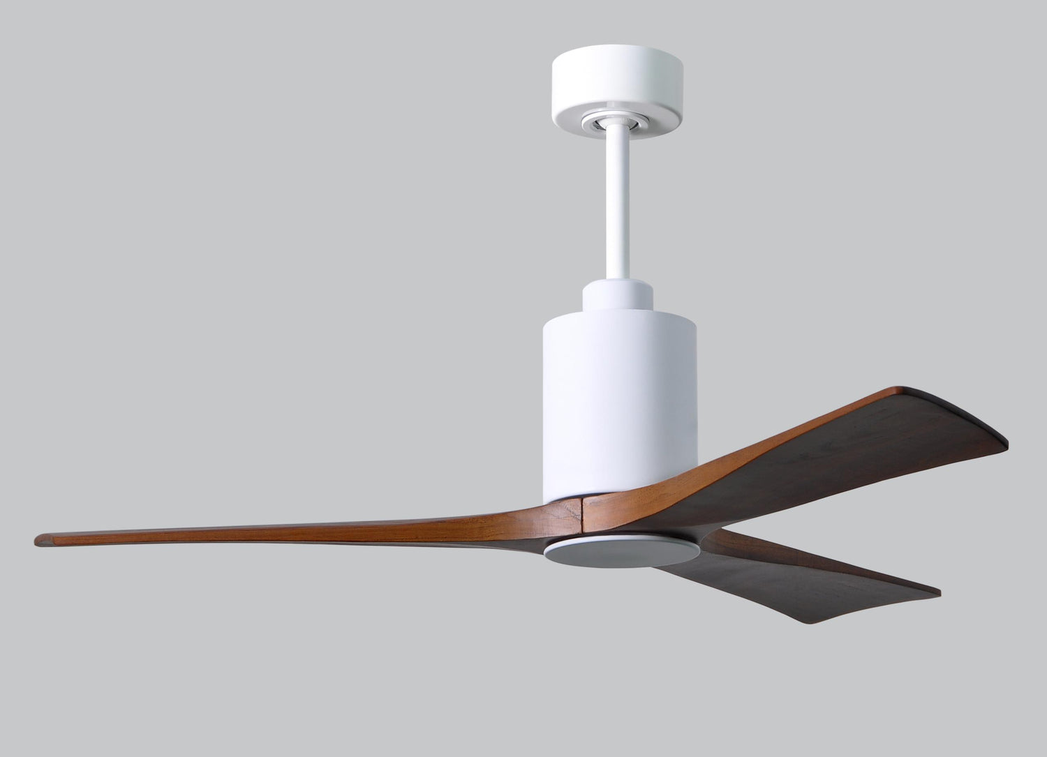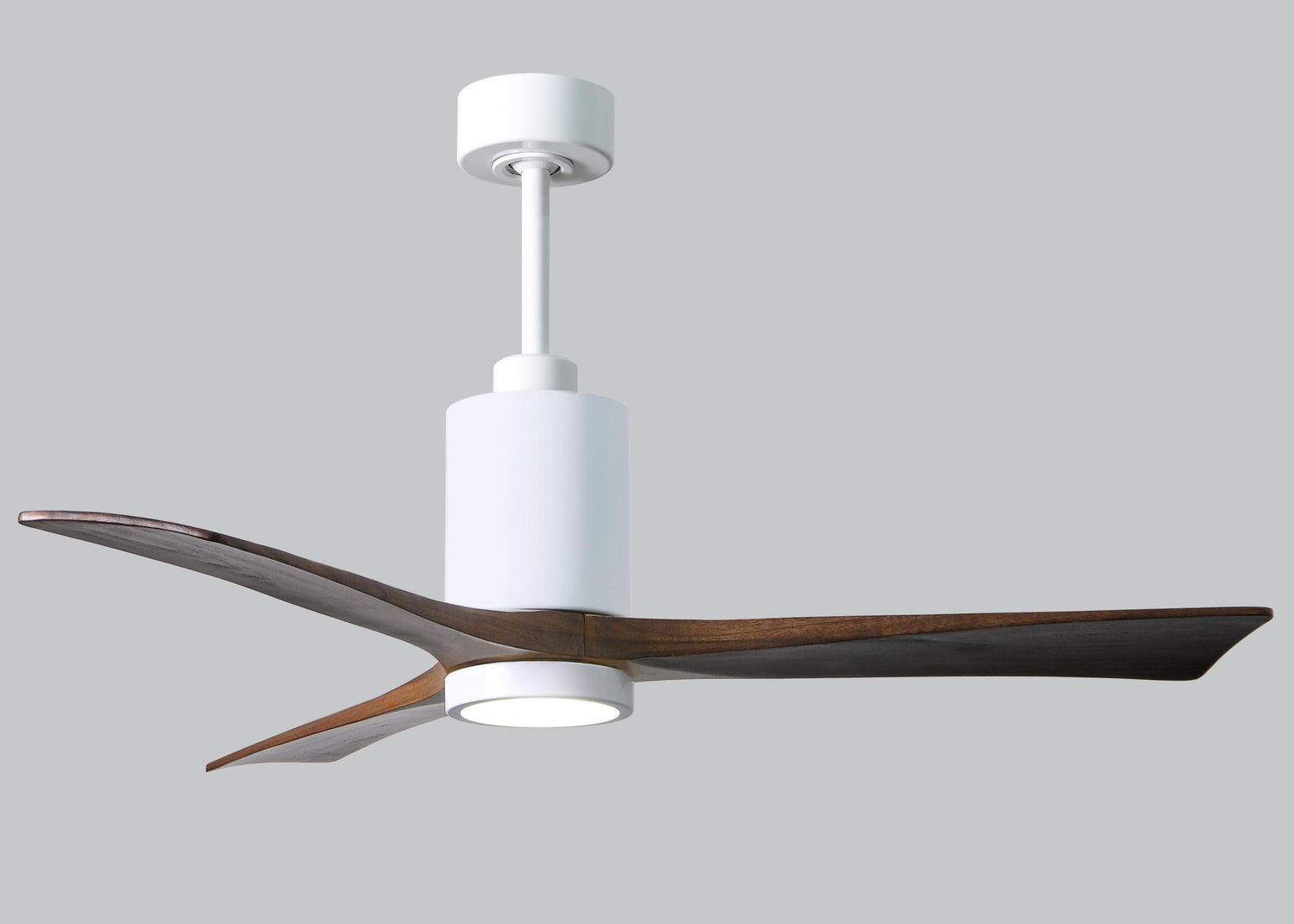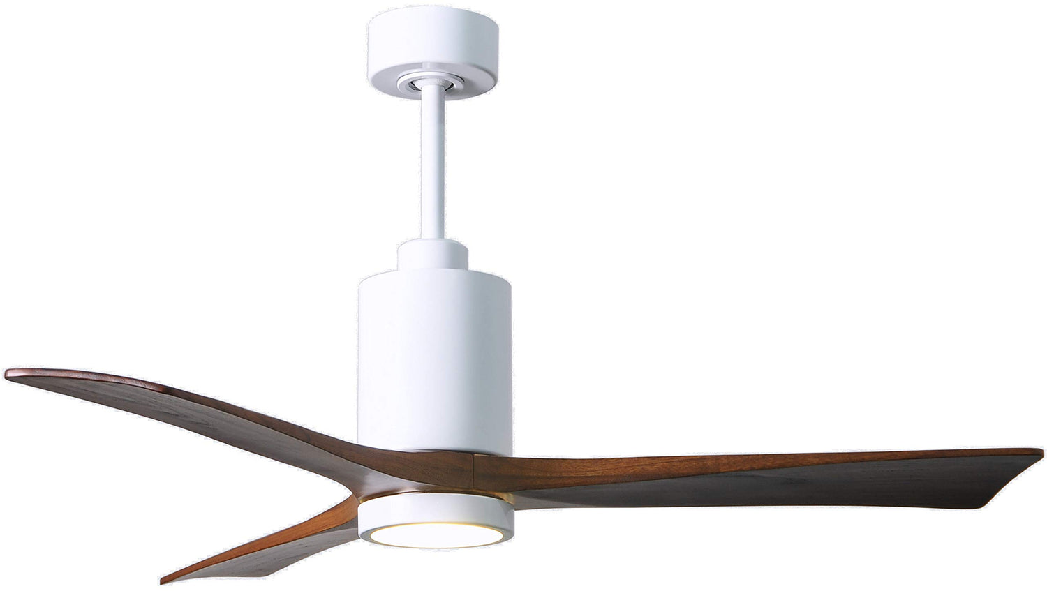 Matthews Fan PA3-WH-WA-52 Patricia-3 three-blade ceiling fan in Gloss White finish with 52” solid walnut tone blades and dimmable LED light kit