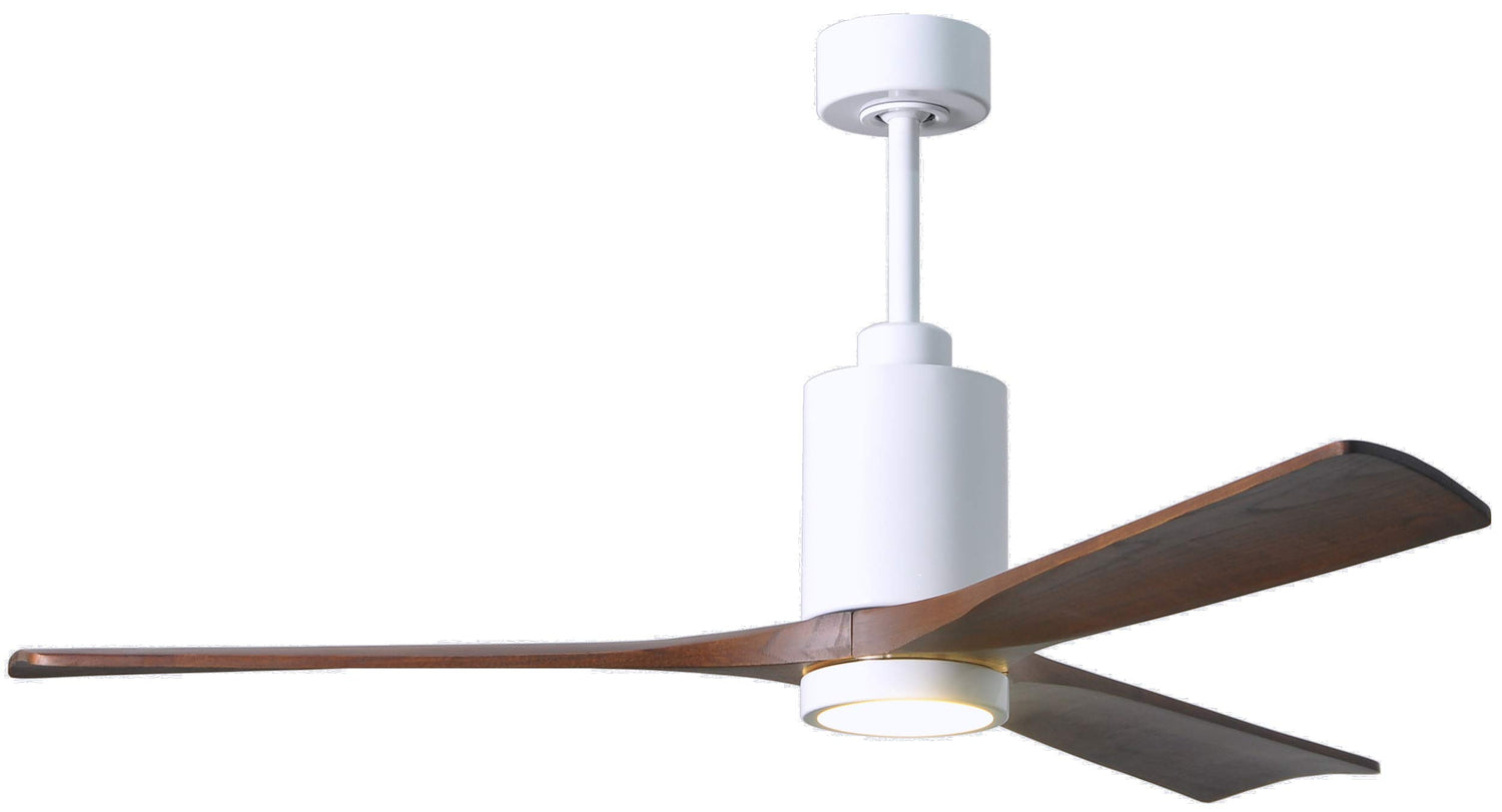 Matthews Fan PA3-WH-WA-60 Patricia-3 three-blade ceiling fan in Gloss White finish with 60” solid walnut tone blades and dimmable LED light kit