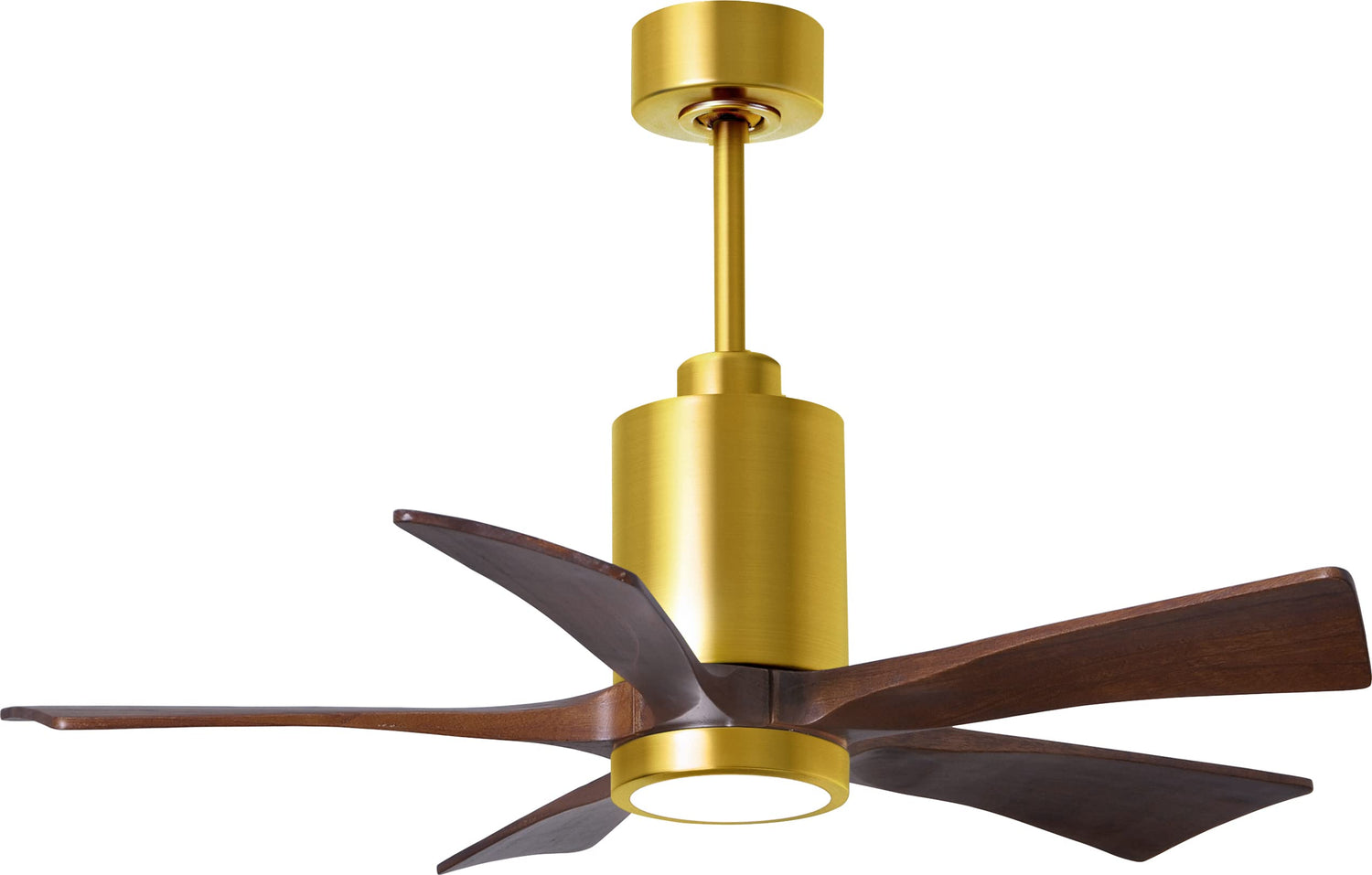 Matthews Fan PA5-BRBR-WA-42 Patricia-5 five-blade ceiling fan in Brushed Brass finish with 42” solid walnut tone blades and dimmable LED light kit