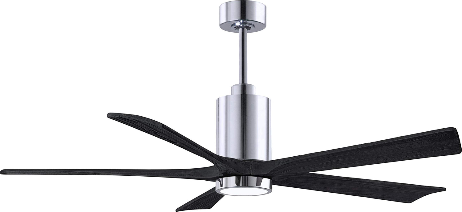 Matthews Fan PA5-CR-BK-60 Patricia-5 five-blade ceiling fan in Polished Chrome finish with 60” solid matte black wood blades and dimmable LED light kit