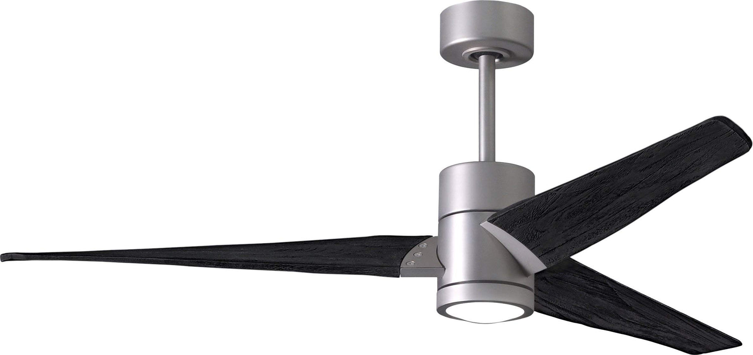 Matthews Fan SJ-BN-BK-60 Super Janet three-blade ceiling fan in Brushed Nickel finish with 60” solid matte blade wood blades and dimmable LED light kit