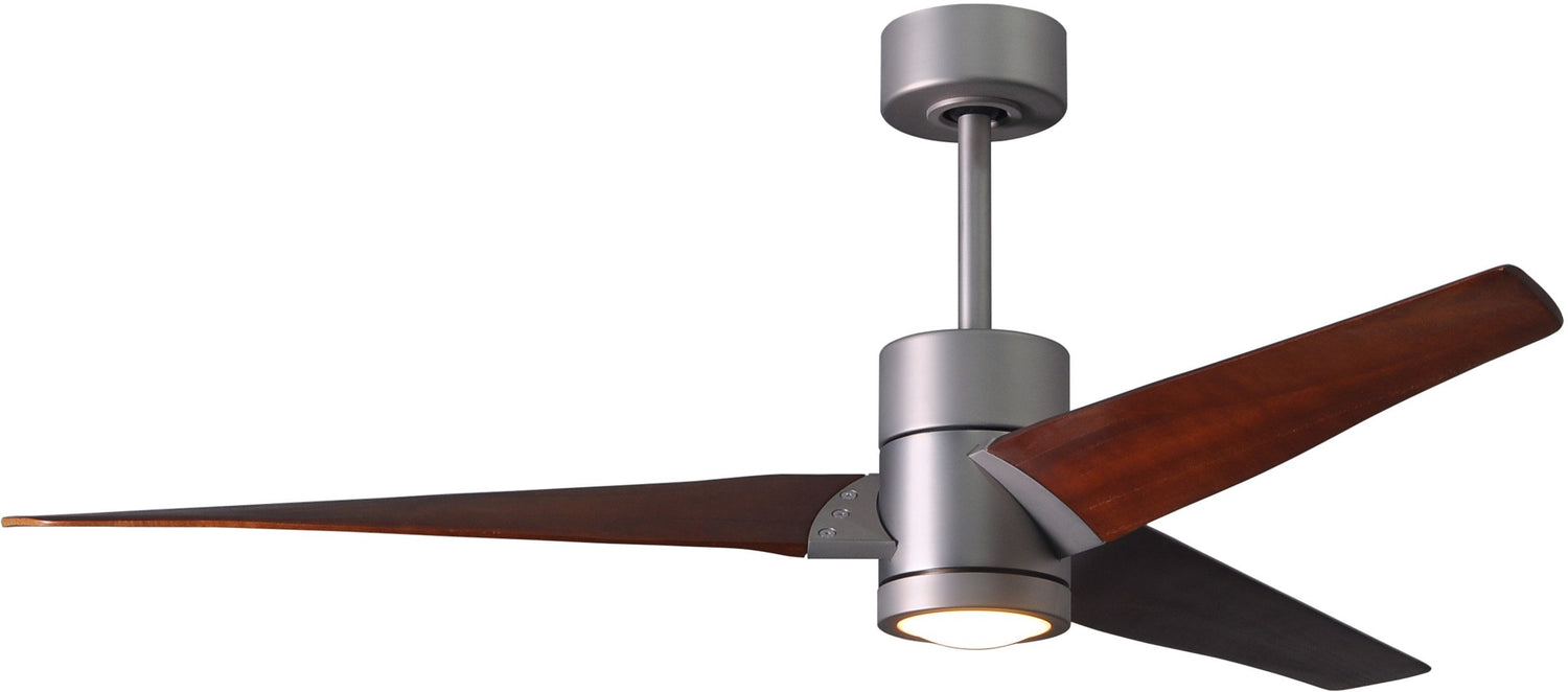 Matthews Fan SJ-BN-WN-60 Super Janet three-blade ceiling fan in Brushed Nickel finish with 60” solid walnut tone blades and dimmable LED light kit