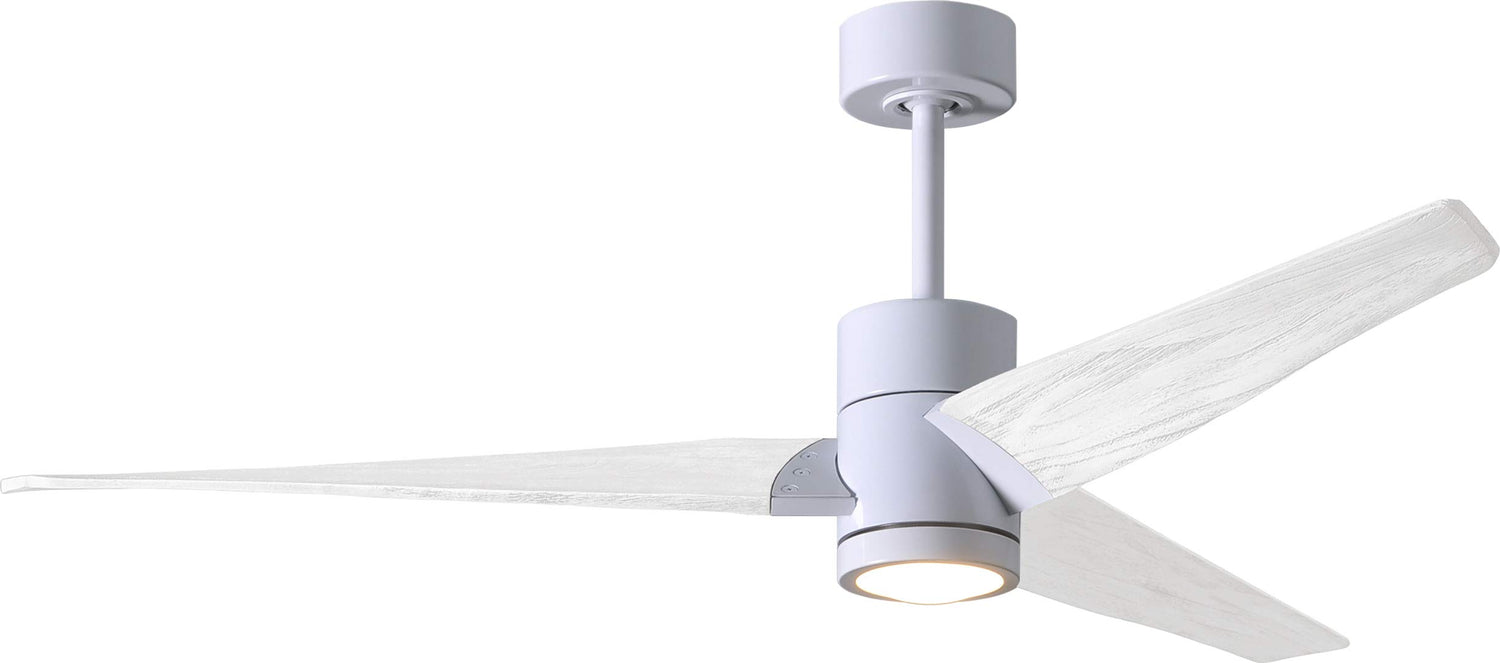 Matthews Fan SJ-WH-MWH-52 Super Janet three-blade ceiling fan in Gloss White finish with 52” solid matte white wood blades and dimmable LED light kit