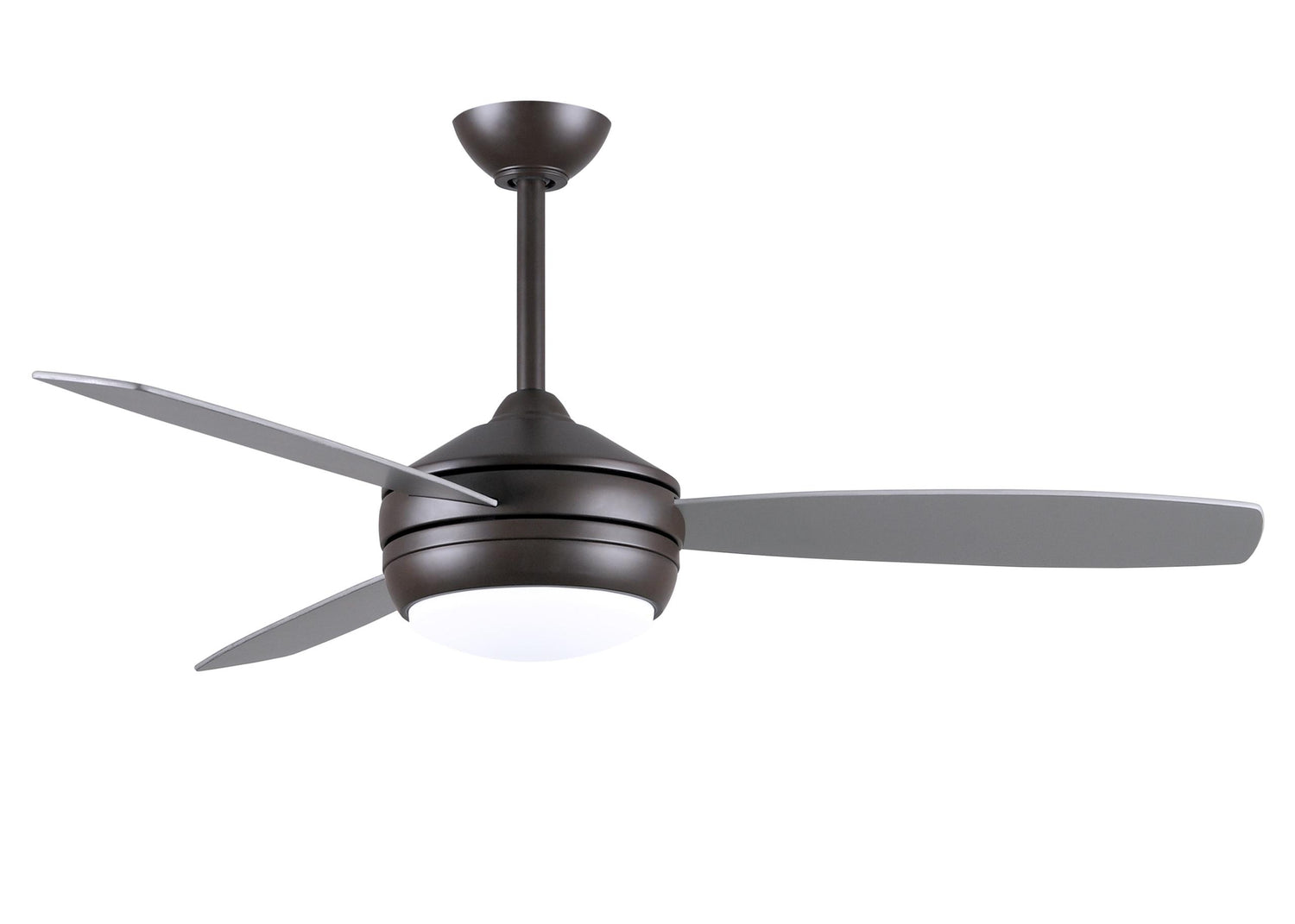T-24 efficient 4-speed ceiling fan in Textured Bronze finish with reversible 52" Matte White/Brushed Nickel blades and LED light kit.