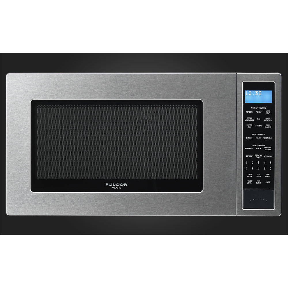 The Fulgor Milano 24-inch counter-top microwave, with its stainless steel aesthetics, is the perfect choice for a modern-style kitchen and spouses perfectly with our other stainless steel appliances. It has a cavity size of 2.0 cu. ft. and output power of 1100 W.