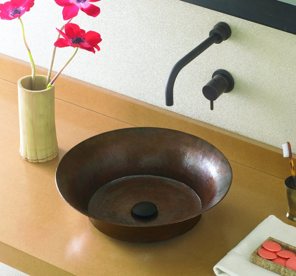 An inspired convergence of texture, craft, and tradition transforms any bath into a personal sanctuary. Native Trails bathroom sinks indulge with their beauty and practicality. The distinctive texture and warm glow is breathtaking; their effortless maintenance is refreshingly practical. Maestro bajo copper vessel sink merges unrivaled craftsmanship with contemporary design. Pushing the boundaries of a bathroom sink, its boastful above-counter mount makes a statement and highlights the incomparable texture of hand hammered copper. Maestro bajo copper bathroom sink is part of the Native Trails Maestro Collection, artisan crafted by master craftsmen of high-quality recycled copper. available in antique, tempered or brushed nickel finishes.