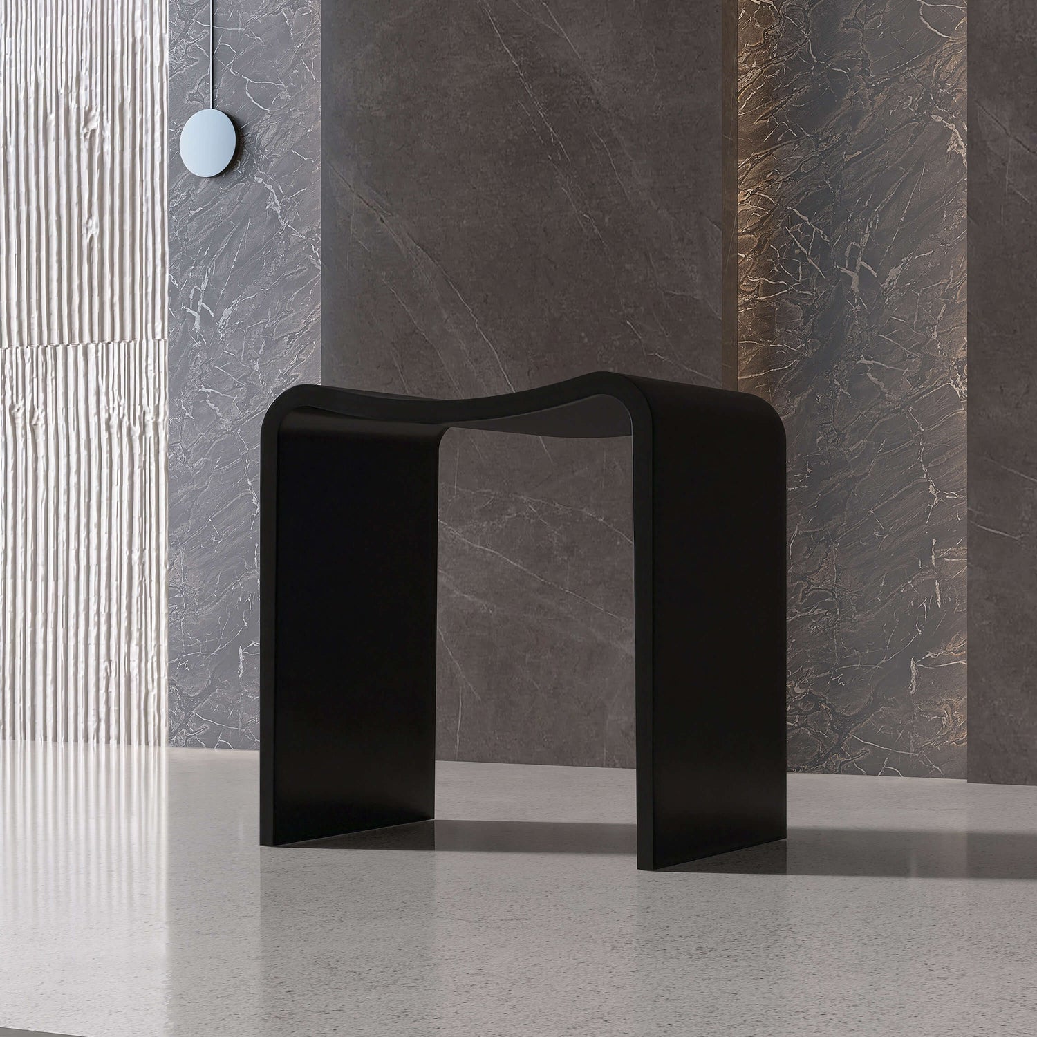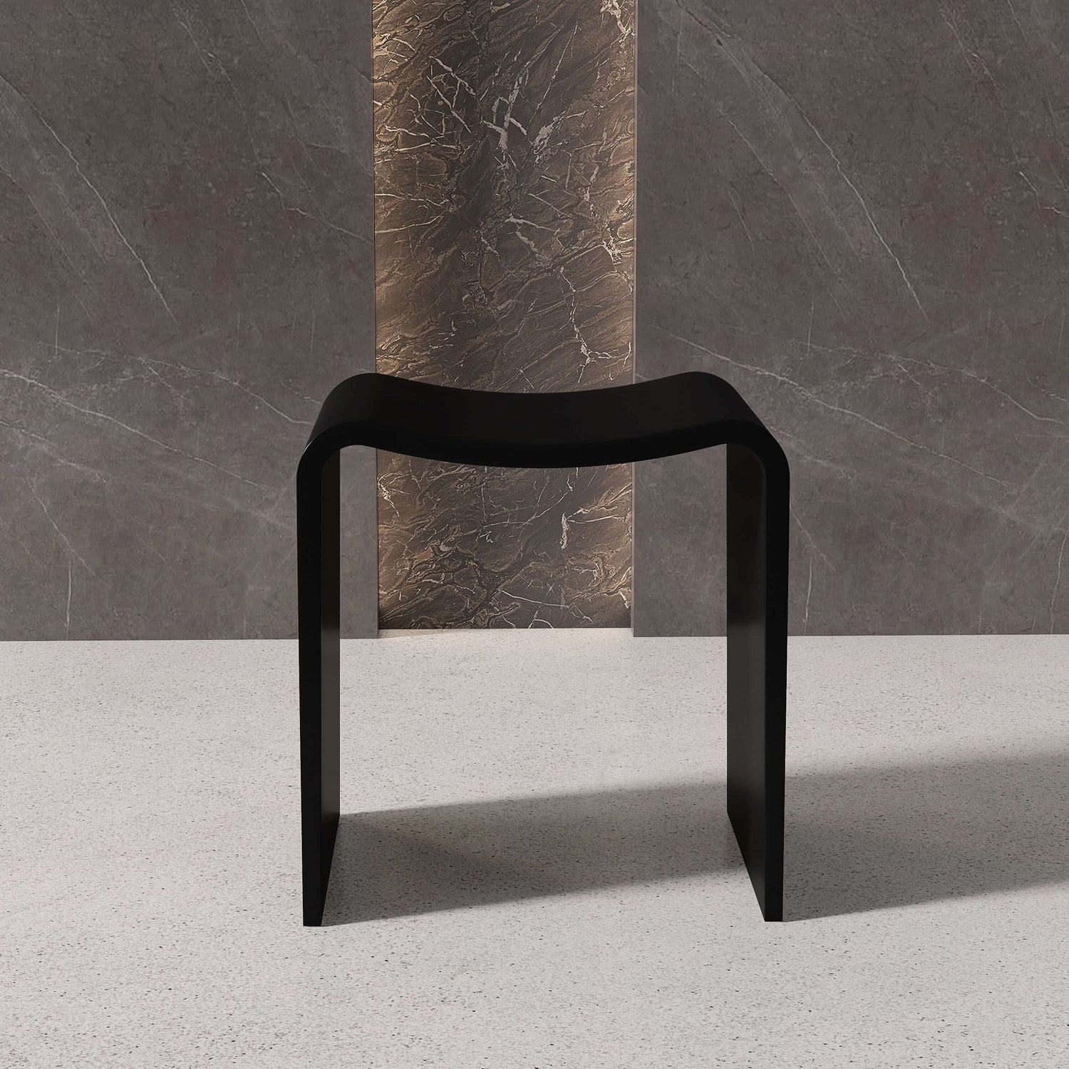 New England Home Goods Surfers 16" Shower Stool in Black - Stone Resin Solid Surface