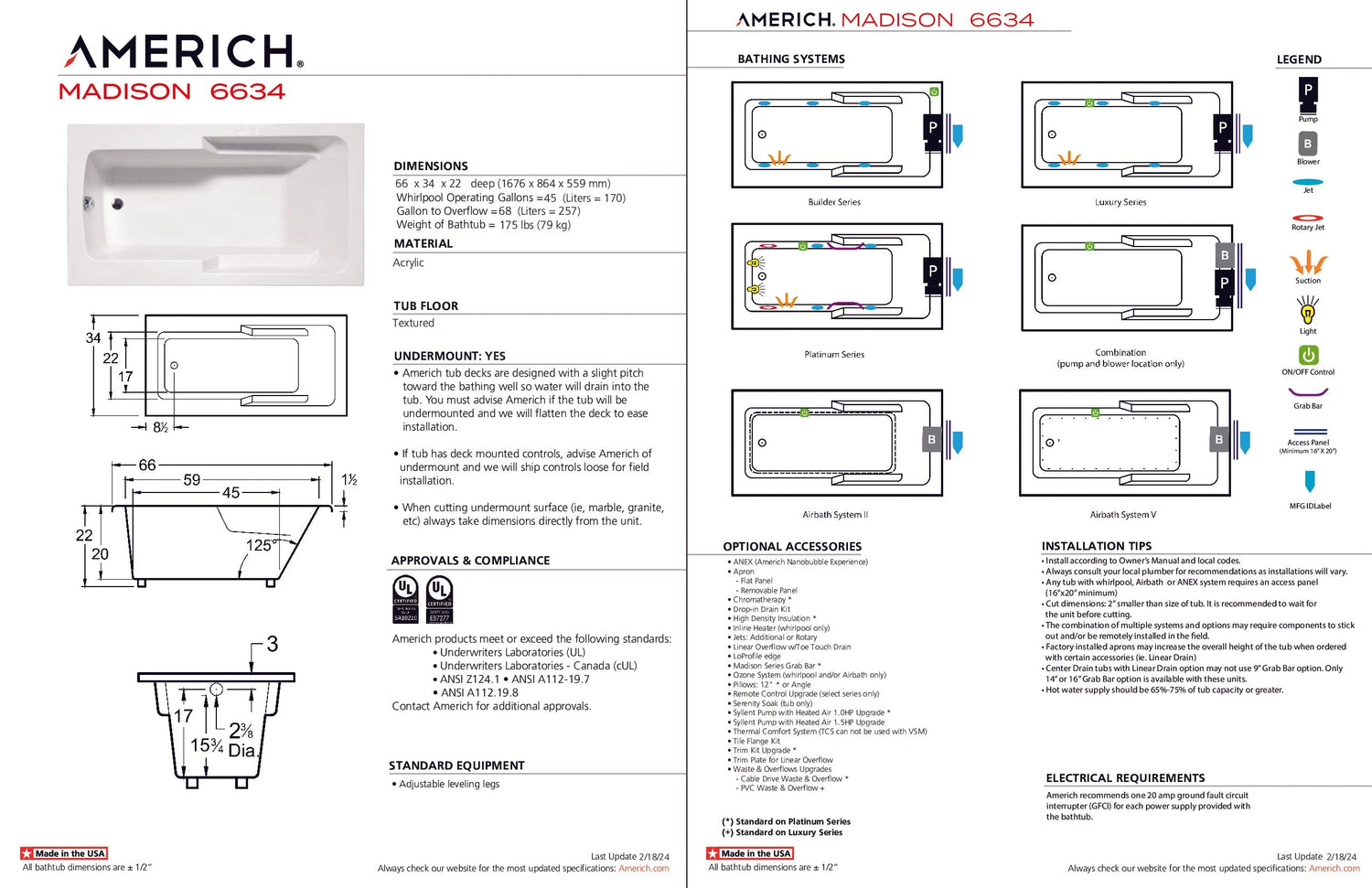 Americh MA6634TA5-BI Madison 6634 - Tub Only / Airbath 5 - Biscuit