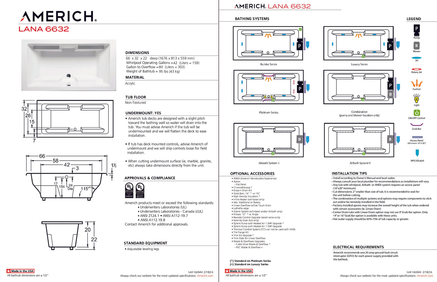 Americh LA6632TA5-BI Lana 6632 - Tub Only / Airbath 5 - Biscuit