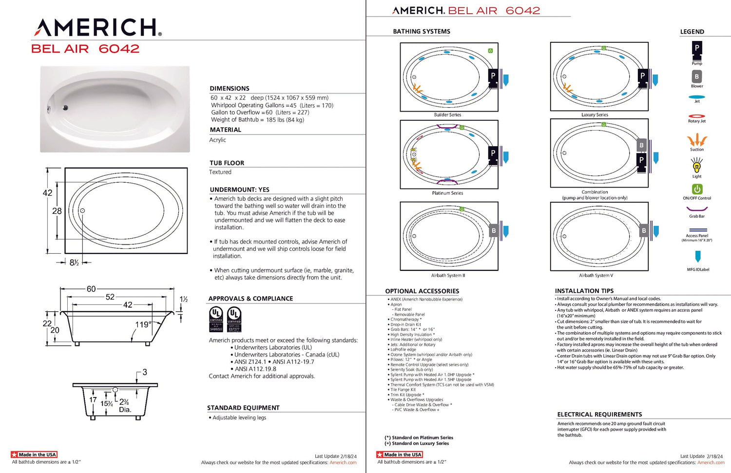Americh BE6042TA2-BI Bel Air 6042 - Tub Only / Airbath 2 - Biscuit