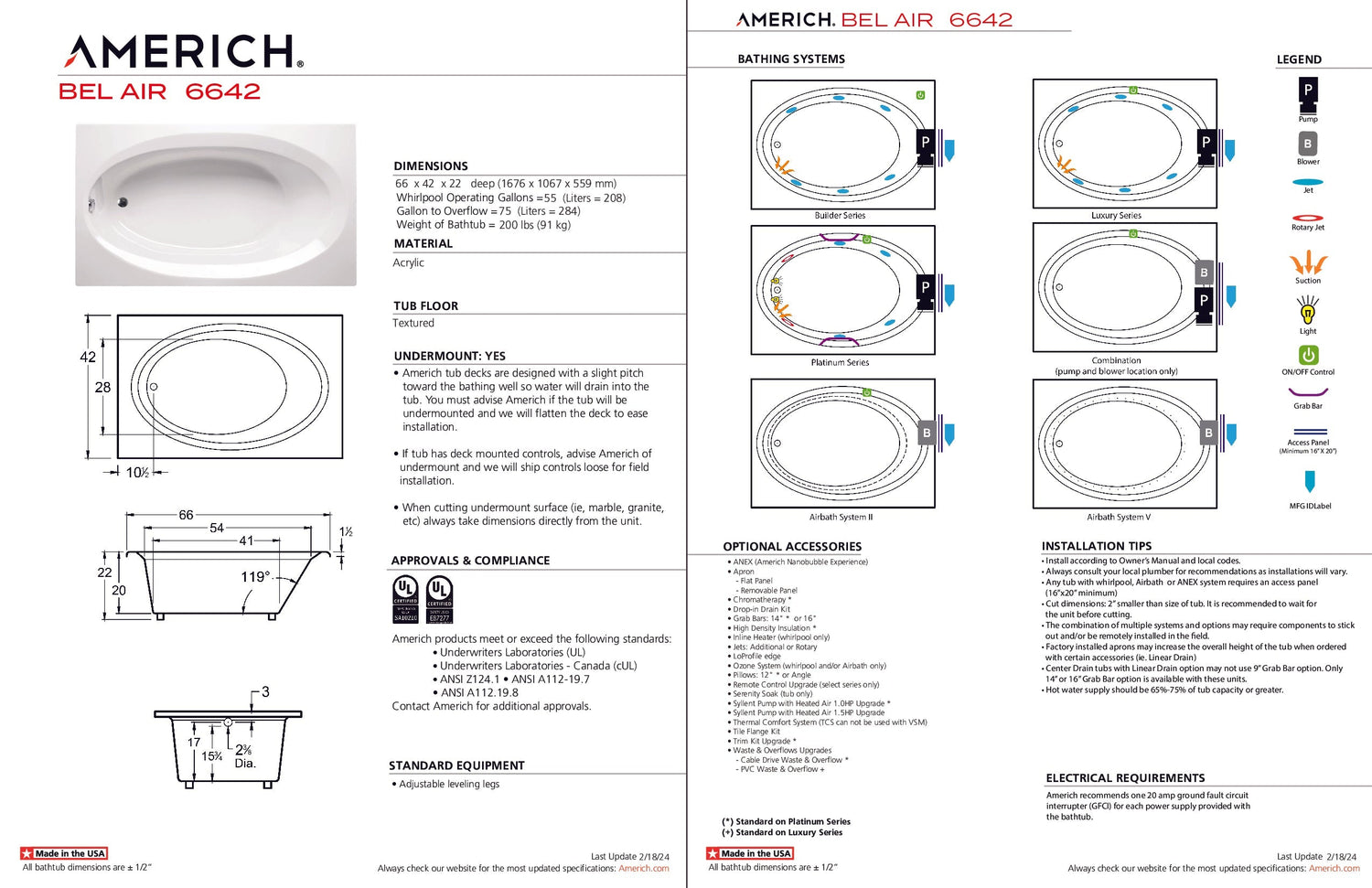 Americh BE6642TA2-BI Bel Air 6642 - Tub Only / Airbath 2 - Biscuit
