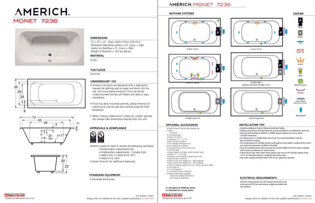 Americh MO7236TA5-BI Monet 7236 - Tub Only / Airbath 5 - Biscuit
