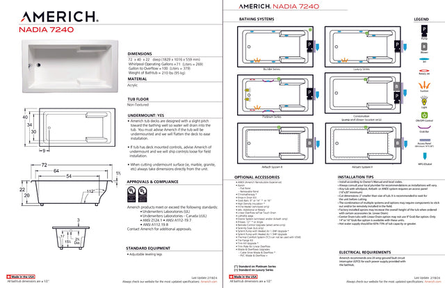 Americh NA7240TA5-BI Nadia 7240 - Tub Only / Airbath 5 - Biscuit