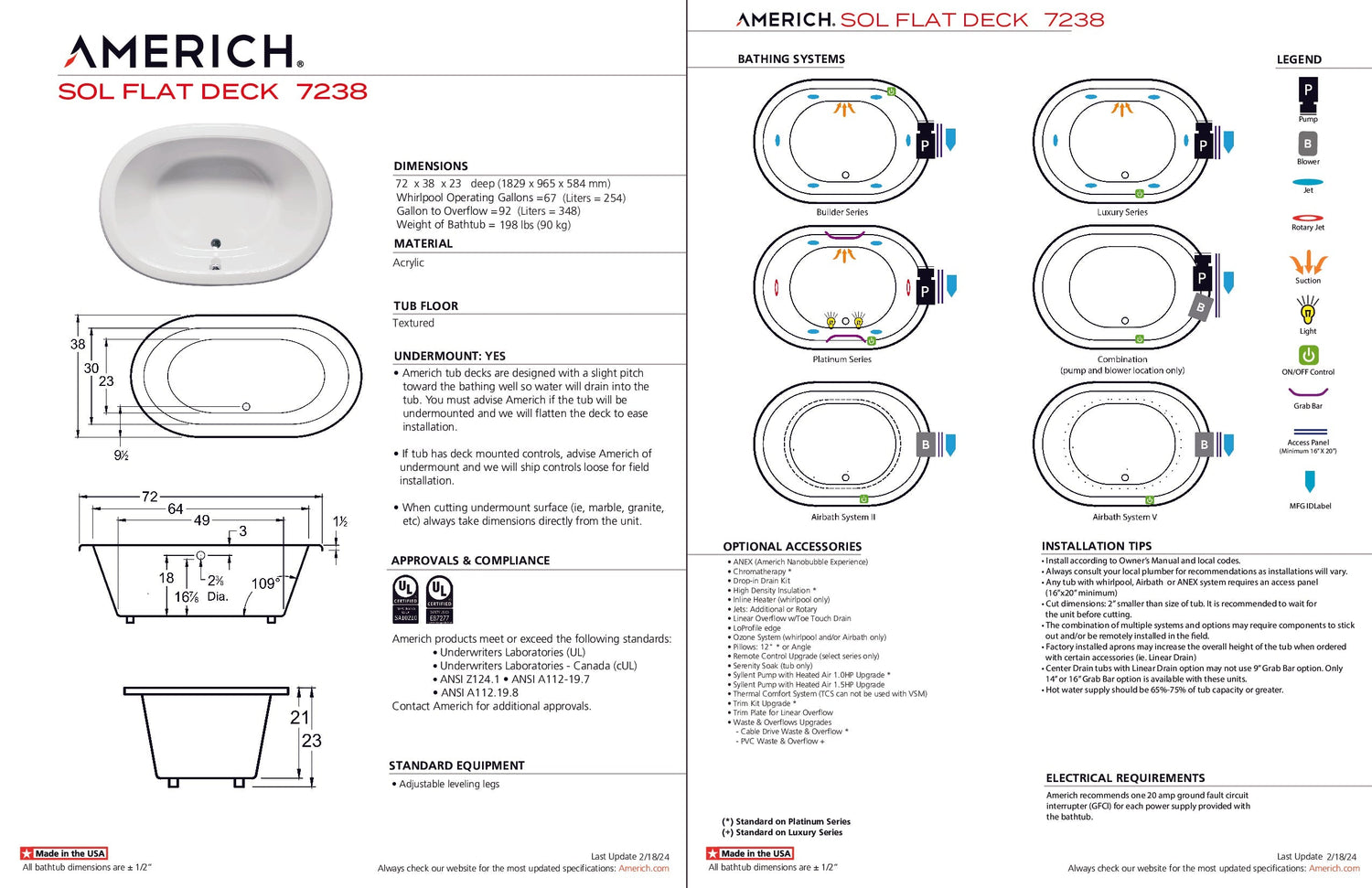 Americh SF7238TA5-BI Sol Flat Deck 7238 - Tub Only / Airbath 5 - Biscuit