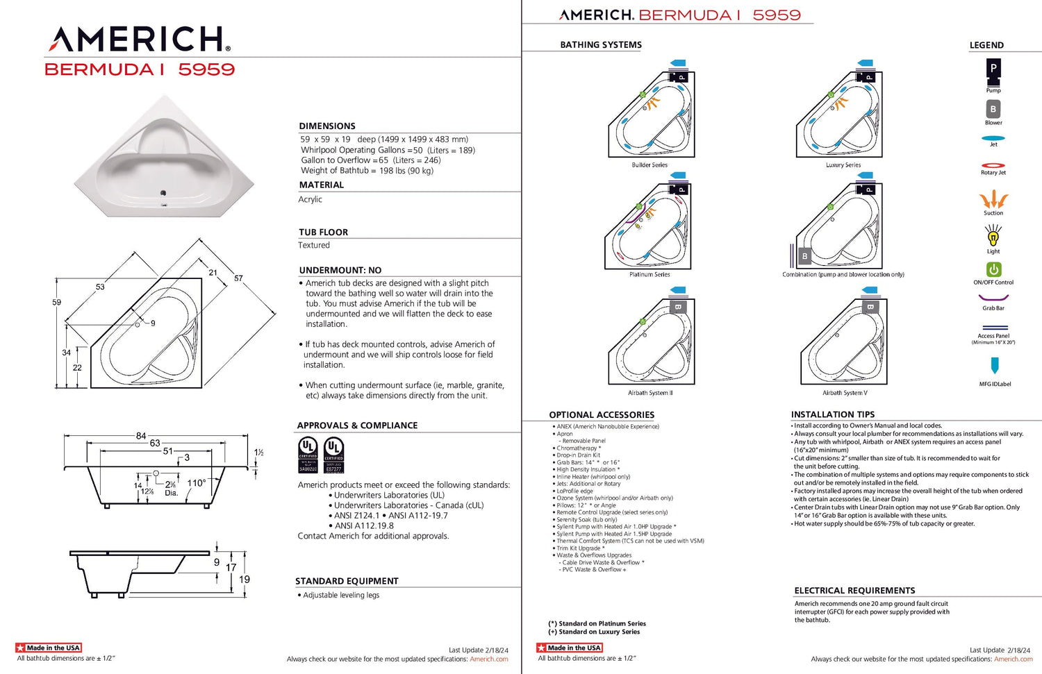 Americh BM0117TA2-BI Bermuda I 5959 - Tub Only / Airbath 2 - Biscuit