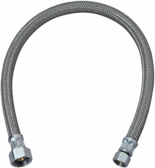 The Plumber's Choice Toilet Line Connector will connect your toilet to its water supply easily, securely and effectively. It was manufactured with superior quality materials and features ultra-secure, leak free compression connections. It is easy to install and includes step-by-step instructions, so you can fix your plumbing on your own and save. Easy installation: high craft toilet hose is quick and easy to install , clear and simple directions allowing you to DIY and save, easily connect toilet line on your own No water leakage : toilet connector features a tight seal comes with pre-installed washers ensuring no water leakage, 2-spare washers included, connect to your toilet worry free Burst proof: water supply line is made of super high tensile strength braided stainless steel protects PVC innertube, ensuring maximum pressure and performance Universal fit: compatible with standard toilet line 3/8 in. x 7/8 in. compression with ballcock plastic nut Quality guaranteed : toilet supply line is manufactured with superior quality rust free stainless steel, lead free and CSA UPC certified