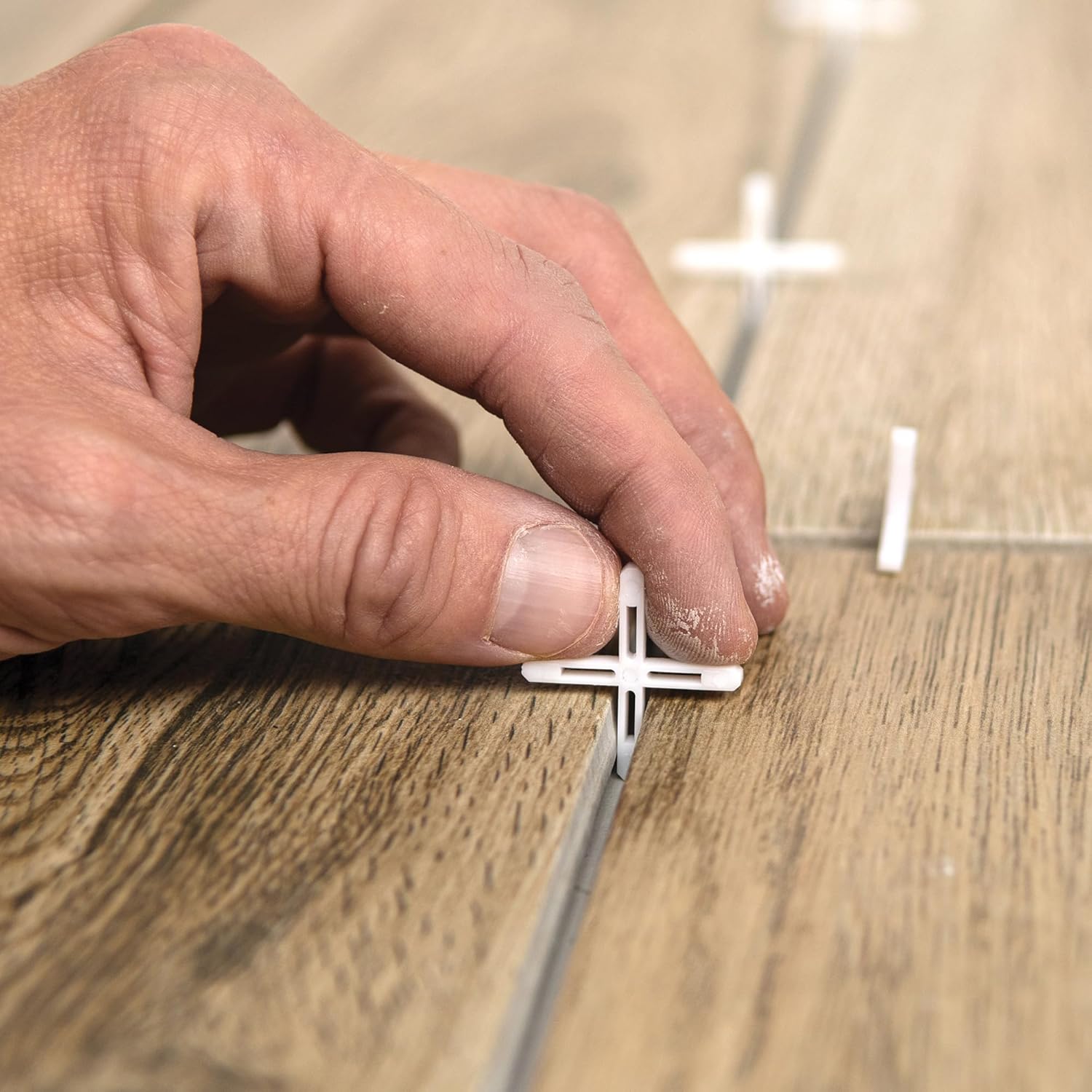 - Hard plastic maintains grout joint width for consistent tile spacing