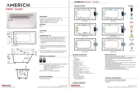 Regular price $3,22500UnavailableAmerich MI5432ADATA2-BI Miro 5432 ADA - Tub Only / Airbath 2 - Biscuit