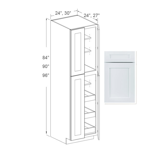 Poshhaus Cabinets Pantry Cabinets, 4 Doors - 84"H, 90"H, 96"H - WP309027 / S8 White