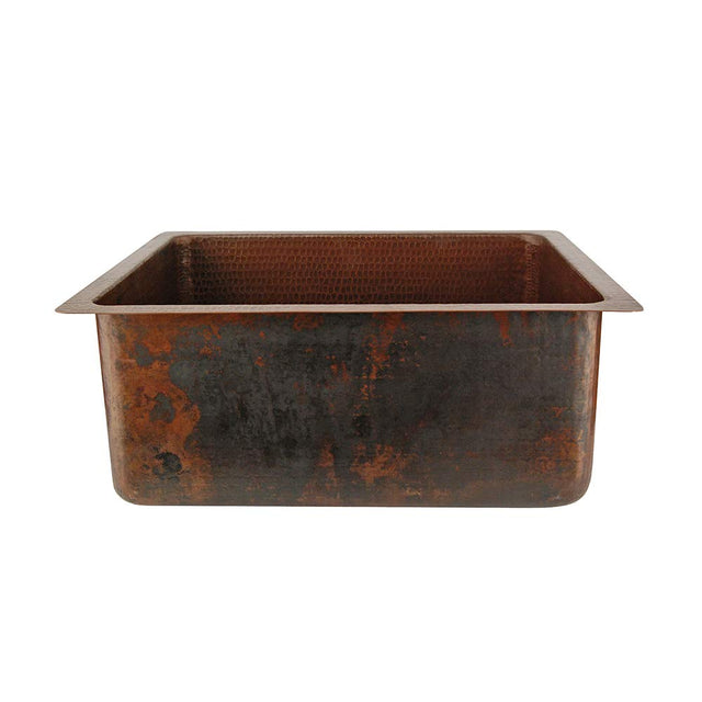 Premier Copper Products BREC20DB 20-Inch Universal Gourmet Rectangular Hammered Copper Kitchen Single Basin Sink, Oil Rubbed Bronze