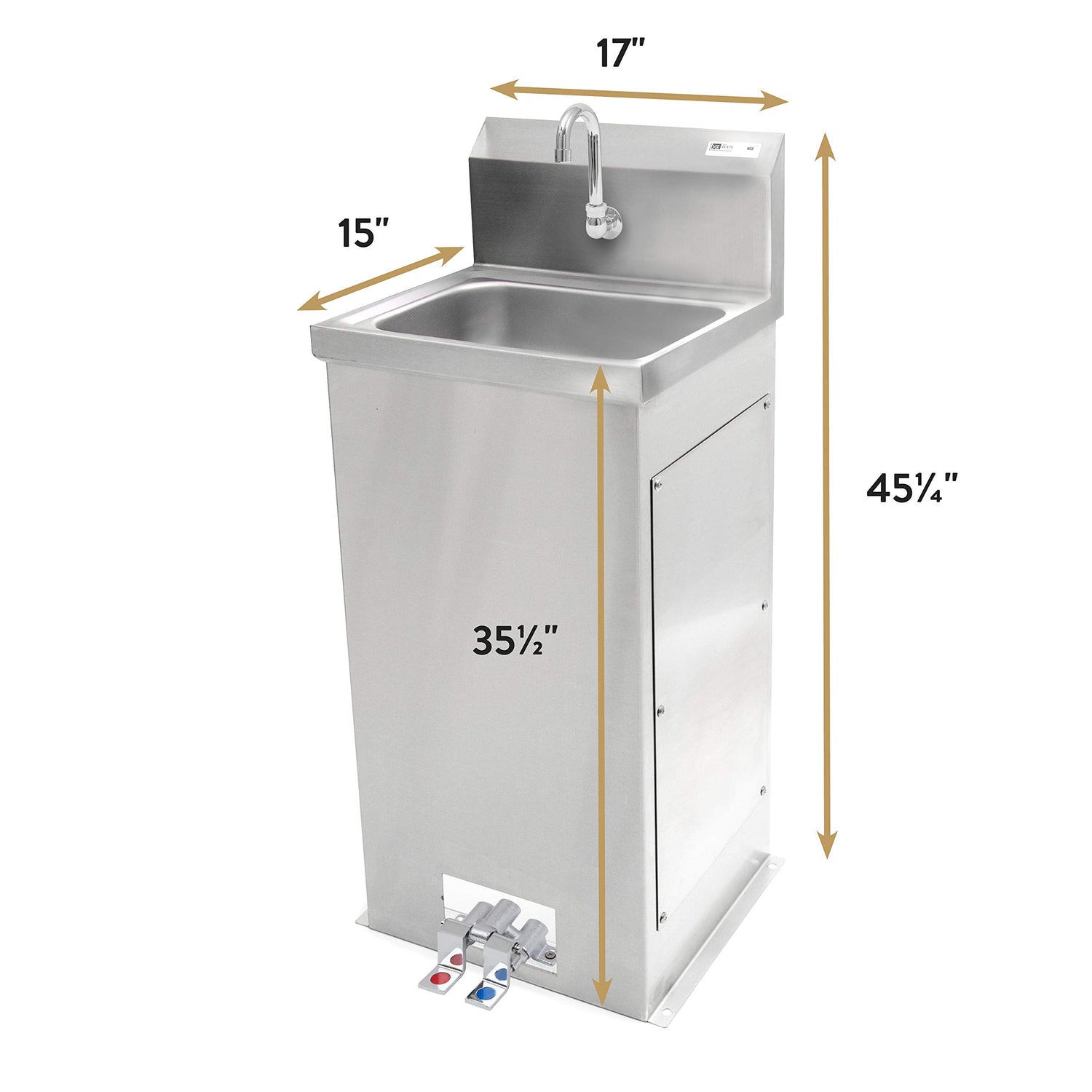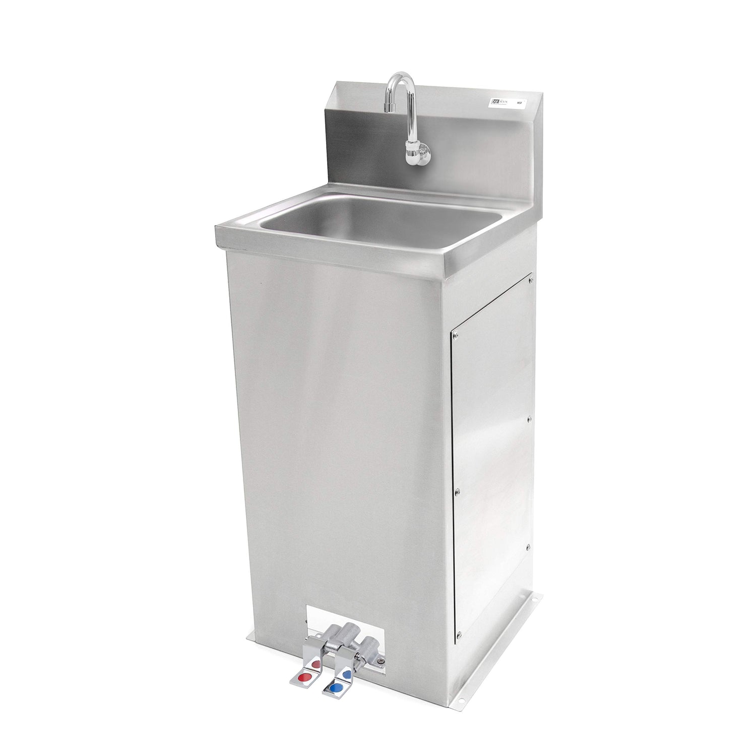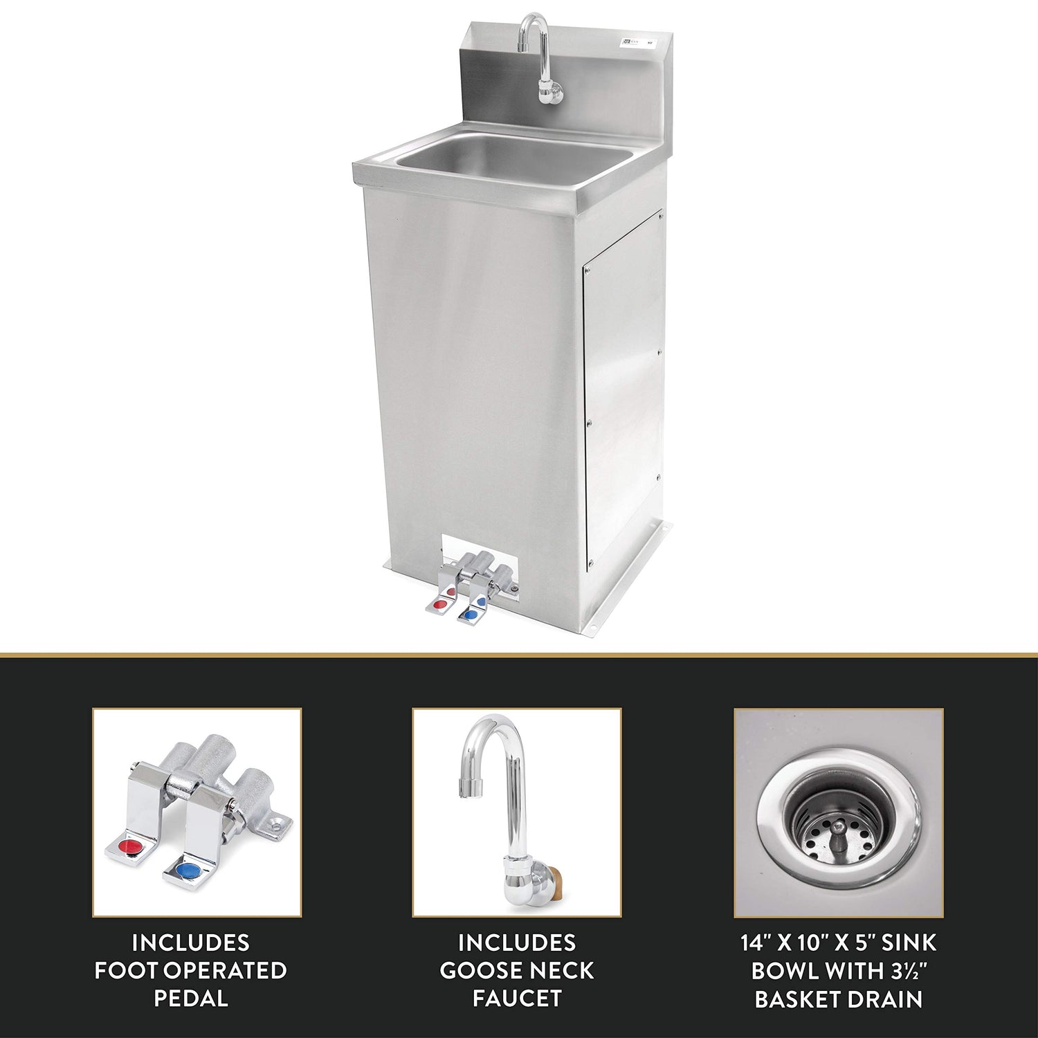 John Boos PBHS-F-1410 Hands-Free Pedestal Hand Washing Sink, 14" Wide x 10" Front to Back 5" Deep Bowl, 1 Centered Splash Mount Faucet Hole, Goose Neck Spout and Foot Valves Included