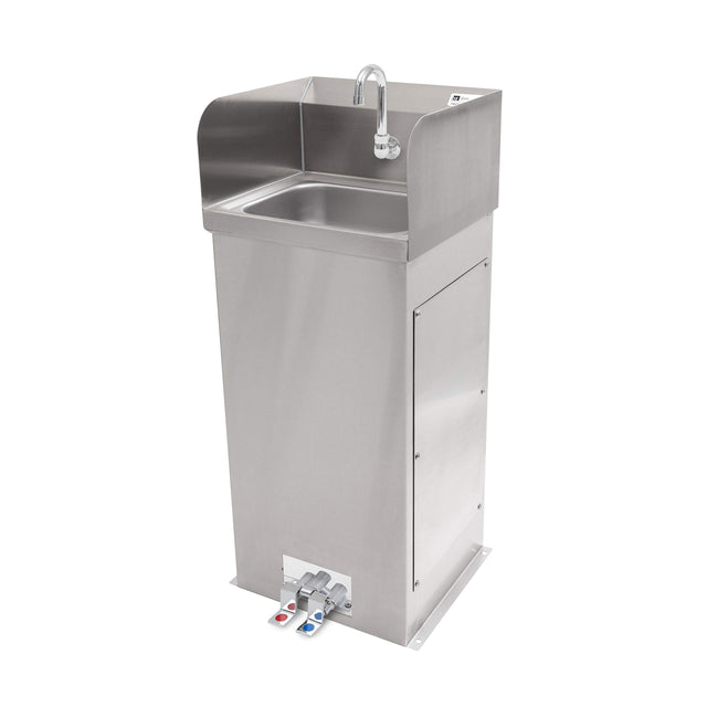 John Boos PBHS-F-1410-SSLR Hands-Free Pedestal Hand Washing Sink 14" W x 10" Front to Back 5" Deep Bowl, with Side Splashes, 1 Centered Splash Mount Faucet Hole, Goose Neck Spout and Foot Valves