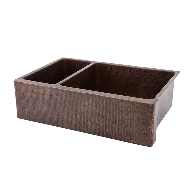 Premier Copper Products KA25DB33229 33-Inch Hammered Copper Kitchen Apron 25/75 Double Basin Sink, Oil Rubbed Bronze