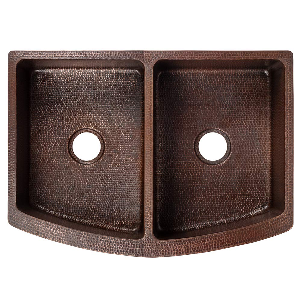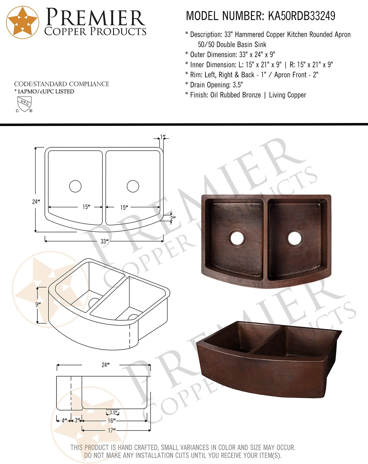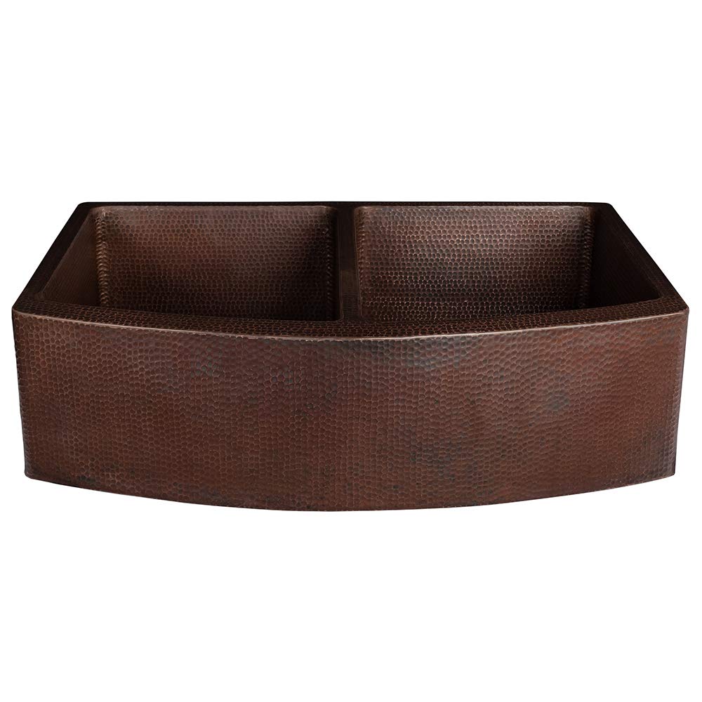 Premier Copper Products KA50RDB33249 33-Inch Hammered Copper Kitchen Rounded Apron 50/50 Double Basin Sink…