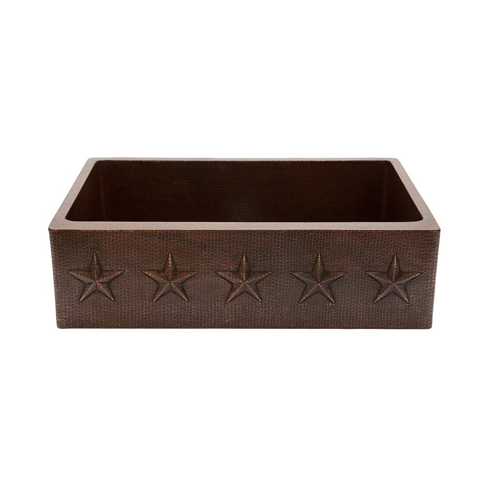 Premier Copper Products KASDB33229ST 33-Inch Hammered Copper Kitchen Apron Single Basin Sink with Star Design, Oil Rubbed Bronze