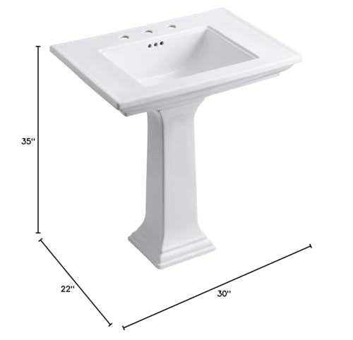 Kohler 2268-8-0 Memoirs Stately 30" pedestal bathroom sink with widespread faucet holes, White