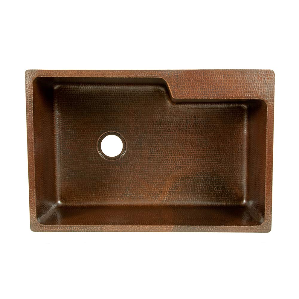 Uncompromising quality, beauty and functionality make up this Premier 33-Inch Hammered Copper Kitchen Single Basin Sink with space for faucet mounting. This Premier Copper Sink is optimized to allow for an easy replacement of your existing kitchen sink and is a perfect solution for an effortless upgrade. Simply take out your old sink and drop in/surface mount your new one-of-a-kind hand made copper kitchen sink. Replaces a 33-Inch by 22-Inch (outer dimensions) standard size kitchen sink. Green recyclable products like copper sinks are a must have in today's modern home. This product is sure to impress your guests and satisfaction is always guaranteed. Hammered Copper Surface. Dimensions: inner 31-Inch by 20-Inch by 9-Inch, outer 33-Inch by 22-Inch by 9-Inch. Installation Type: surface-mount or under-mount. Countertop Depth Required: 23-Inch front to back. Material gauge: Industry Best (14-guage or .0625-Inch). Drain size is 3.5-Inch. Suggested Drain Models: D-130ORB, D-132ORB (Drain sold separately). Faucet Mounting: Faucet Mounts On Built In Copper Ledge. It is handmade, 100-Percent recyclable and made of 99.7-Percent pure recycled copper. It is Lead Free (less than 0.01-Percent). Patina: Fired. Packaging: Wood Crate. Warranty: Limited Lifetime. Sink comes with care Instructions and warranty information. Suggested accessories: Installation Silicone for Model: C900-ORB, Copper Sink Wax- Model: W900-WAX and Kitchen Faucet for Model: K-PD01ORB.From the ManufacturerUncompromising quality, beauty and functionality make up this Premier 33-Inch Hammered Copper Kitchen Single Basin Sink with space for faucet mounting. This Premier Copper Sink is optimized to allow for an easy replacement of your existing kitchen sink and is a perfect solution for an effortless upgrade. Simply take out your old sink and drop in/surface mount your new one-of-a-kind hand made copper kitchen sink. Replaces a 33-Inch by 22-Inch (outer dimensions) standard size kitchen sink. Green recyclable products like copper sinks are a must have in today's modern home. This product is sure to impress your guests and satisfaction is always guaranteed. Hammered Copper Surface. Dimensions: inner 31-Inch by 20-Inch by 9-Inch, outer 33-Inch by 22-Inch by 9-Inch. Installation Type: surface-mount or under-mount. Countertop Depth Required: 23-Inch front to back. Material gauge: Industry Best (14-guage or .0625-Inch). Drain size is 3.5-Inch. Suggested Drain Models: D-130ORB, D-132ORB (Drain sold separately). Faucet Mounting: Faucet Mounts On Built In Copper Ledge. It is handmade, 100-Percent recyclable and made of 99.7-Percent pure recycled copper. It is Lead Free (less than 0.01-Percent). Patina: Fired. Packaging: Wood Crate. Warranty: Limited Lifetime. Sink comes with care Instructions and warranty information. Suggested accessories: Installation Silicone for Model: C900-ORB, Copper Sink Wax- Model: W900-WAX and Kitchen Faucet for Model: K-PD01ORB.