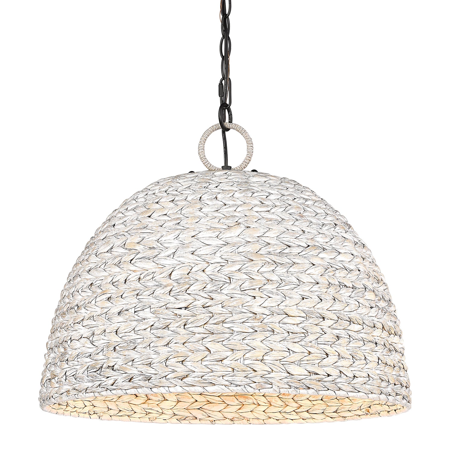 Wild by nature, Rue draws inspiration from ancestral basket-making traditions. Painted Sweet Grass is braided in a herringbone pattern and then tightly woven into dome shades. The shape of the large shades directs light downward for excellent downlight. The chain-hung fixtures feature collapsible arms to allow the fixture's shade to be removed after installation. Modern style meets tradition within this collections contemporary matte black finish and hand-woven shade. The look is perfect for coastal and natural interiors.