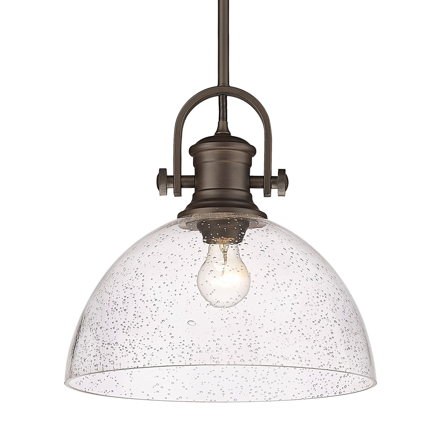 Hines 1-Light Pendant in Rubbed Bronze with Seeded Glass