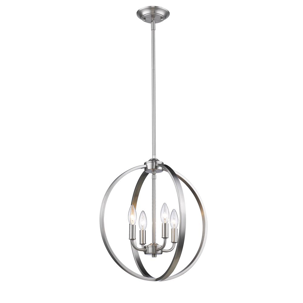 This collection is a transitional and industrial-chic design. Ideal for lofts, farmhouses and contemporary interiors, curvaceous arms sit inside simple round frames. The collection offers an extensive line of ceiling fixtures. Fixtures may be purchased with or without metal mesh shades. The optional shades shield the exposed bulb of these elemental fixtures. Available in multiple finishes, this 4-light pendant creates a dramatic focal point and smooth ambient lighting.