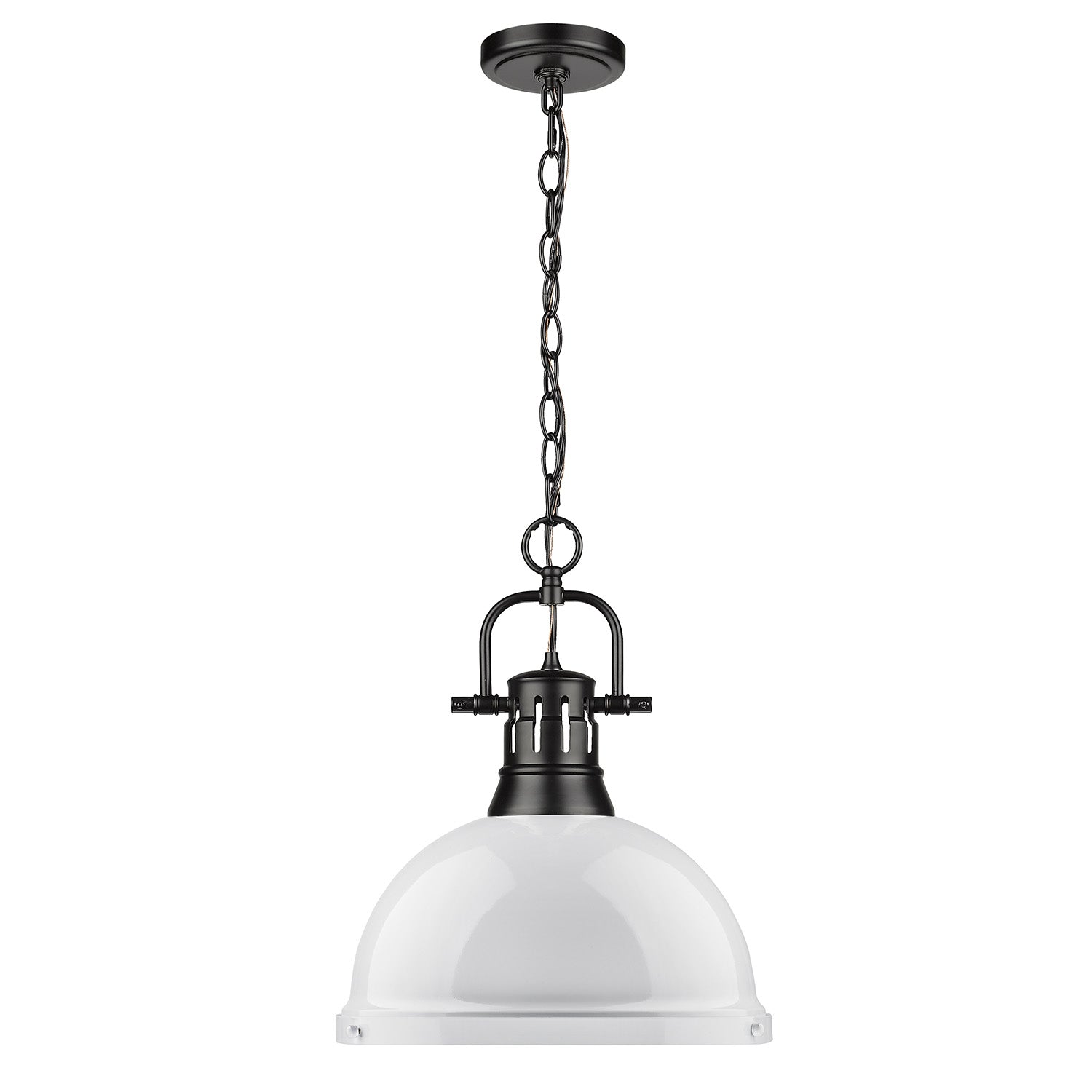Duncan 1 Light Pendant with Chain in Matte Black with a White Shade