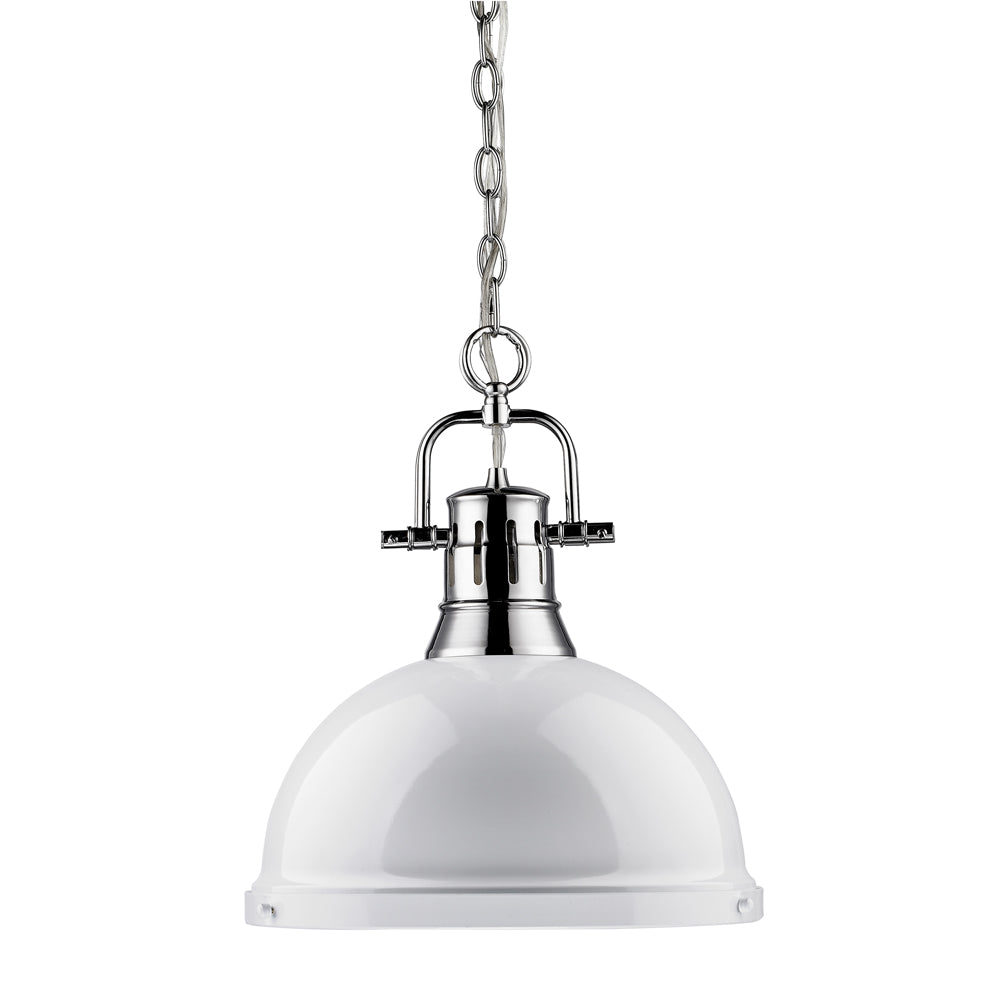 Duncan 1 Light Pendant with Chain in Chrome with a White Shade