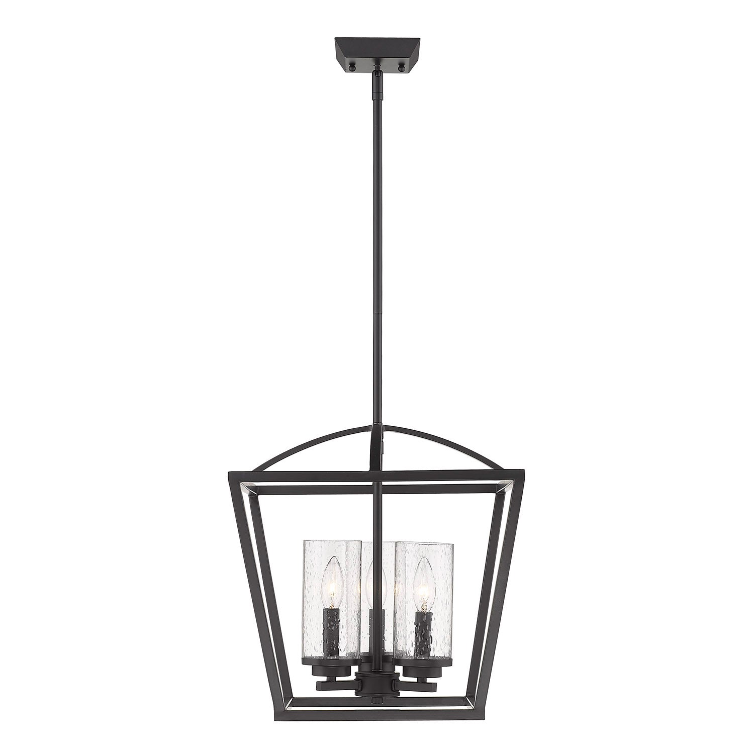Mercer 3 Light Pendant in Matte Black with Matte Black accents and Seeded Glass