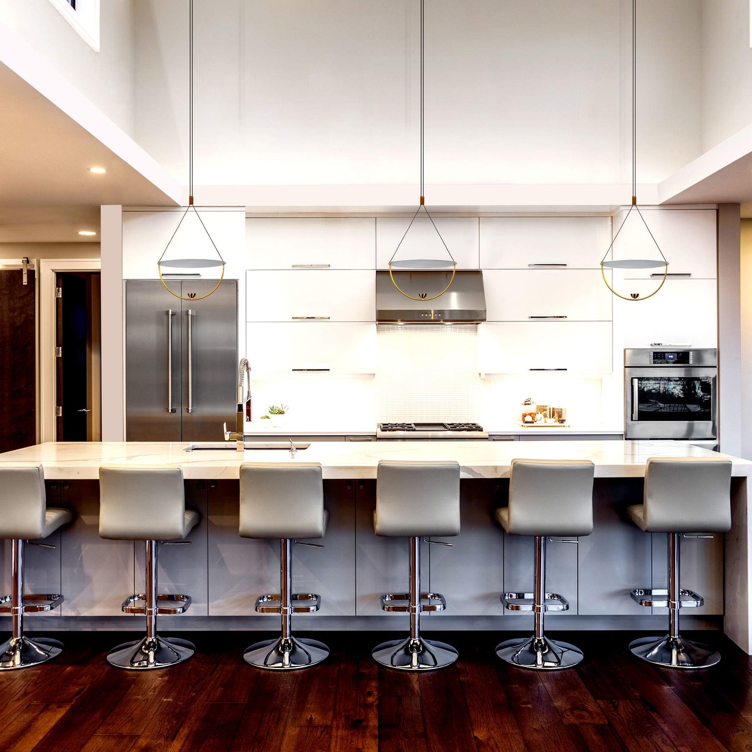 Description"Product Inspiration: Beyond its distinct beauty, VONN Artisan Collection is an LED energy efficient solution for any residential as well as commercial setting. While contemporary, this unique Collection will compliment any transitional or modern decor. Emphasis on design and function absolutely cannot stand short of quality. These handcrafted masterpieces have a lightweight construction and can easily be installed in minutes. The combination of glass, fabric, and metals, the Artisan Art Deco LED lighting Collection employs a variety of colors and finishes to create a distinctive and futuristic effect while preserving the elegance and style of the past.Product Features: LED: Integrated LED fixture DESIGN: Modern Pendant with Aluminum Shade in Silver LIGHT DIRECTION: Up/ Ambient ADJUSTABLE: Cable locking pin allow the suspension height to be easily changed post-install DIMMABLE: Dimmable LED (15% - 100%) with ELV - Electric Low Voltage dimmers (Dimmer is not included with the fixture) ONLY compatible with ELV dimmers. Wifi, Smart, and Universal dimmers are NOT compatible SOFT WHITE: 3000 Kelvin color temperature BRIGHTNESS: 107 Lumens EFFICIENCY: 5 Watts low power consumption CRI 90 DRY LOCATION APPROVED: ETL listed for dry locations VOLTAGE: Operates on standard 120 line voltage ETL Certified, cETL, Title 20 Compliant, Title 24 Compliant, Prop 65 Compliant, Energy Star Compliant Installer Tip: DO NOT CUT WIRES attached to the fixture under any circumstance. Excess cable should be neatly looped and tucked into the canopy Slanted/ Sloped Ceiling Compatible 5 YEAR LIMITED WARRANTY: Fixture and LED system covered under warranty periodProduct Specifications: PRODUCT DIMENSIONS: 15.75 inches L x 15.75 inches W OVERALL HEIGHT: minimum 28.25 inches, maximum 80.25 inches SHADE DIMENSIONS: 15.75 inches Diameter x 7.75 inches H CANOPY DIMENSIONS: 5 inches Diameter x 1.5 inches H PRODUCT WEIGHT: 2.8 Lbs.THE MEASUREMENTS ARE ROUNDED TO THE NEAREST 1/4"""
