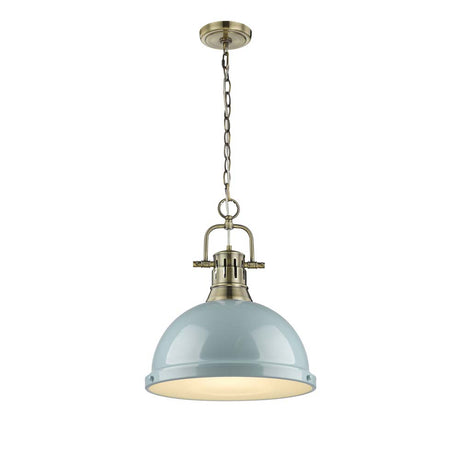 Regular price $19799UnavailableIn stock online (17 Units)Duncan 1 Light Pendant with Chain in Aged Brass with a Seafoam Shade