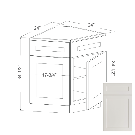 BASE END CORNER CABINET 2 DOORS, 1 SHELF, 2 DUMMY DRAWERS - 24" WIDE X 24" DEEP X 34.5" HIGH