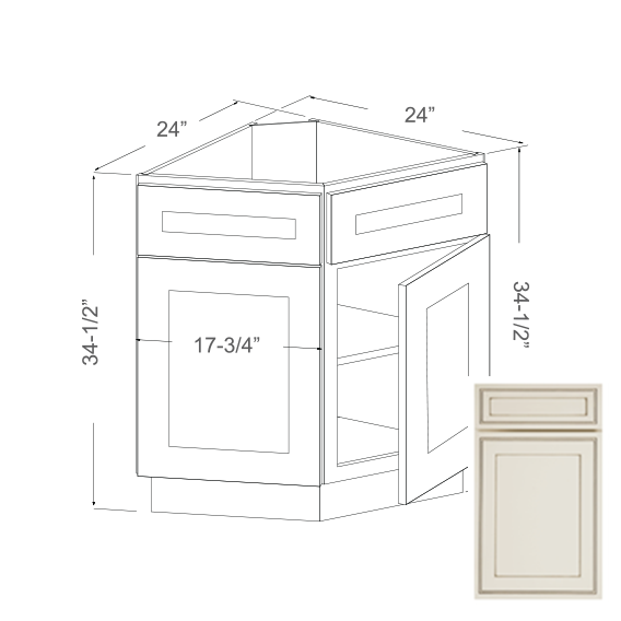 BASE END CORNER CABINET 2 DOORS, 1 SHELF, 2 DUMMY DRAWERS - 24" WIDE X 24" DEEP X 34.5" HIGH