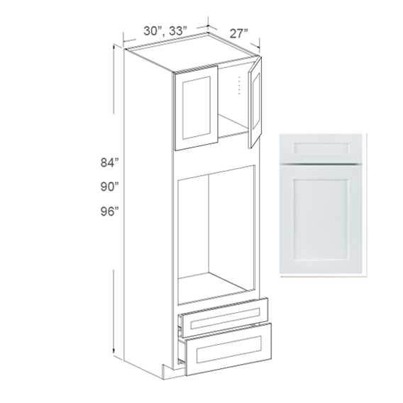 Poshhaus Cabinets Tall Oven Cabinet, 1 Bottom Drawer - 84"H, 90"H, 96"H - OC309627WO / S8 White