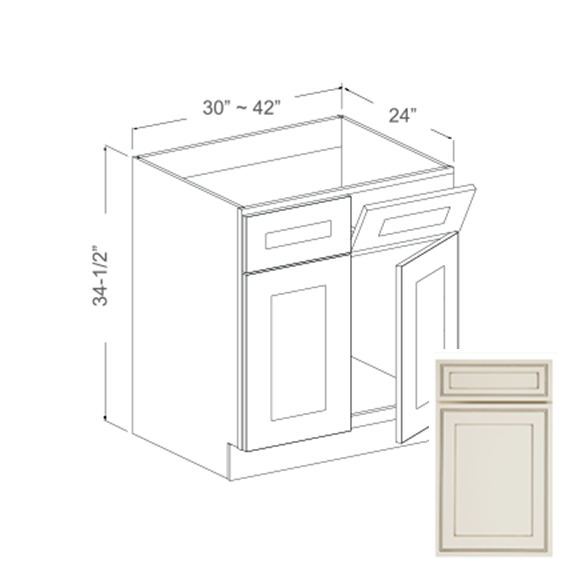 Poshhaus Cabinets Sink Base with 2 Doors - SB24 / H9 Pearl Glazed