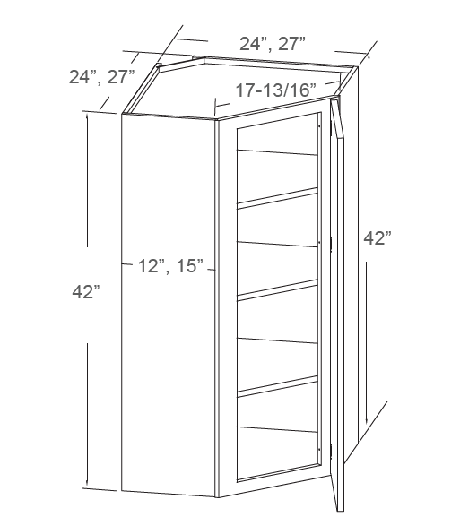Poshhaus Cabinets S8 Shaker White WALL DIAGONAL CABINET - 24" W X 42" H X 24" D