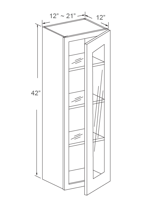 Poshhaus Cabinets S8 Shaker White GLASS WALL CABINET - DOES NOT INCLUDE GLASS SHELF(ITEM CODE GS##) OR GLASS INSERT(ITEM CODE WM####G-A02) - 12" W X 42" H X 12" D