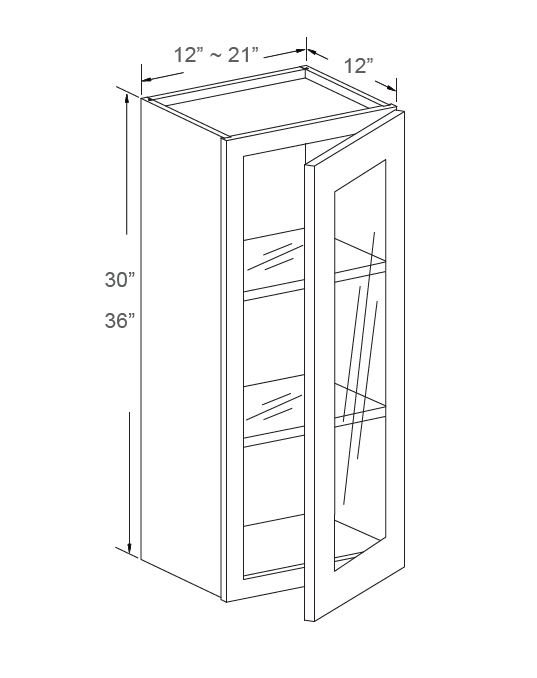 Poshhaus Cabinets S8 Shaker White GLASS WALL CABINET - DOES NOT INCLUDE GLASS SHELF(ITEM CODE GS##) OR GLASS INSERT(ITEM CODE WM####G-A02) - 21" W X 30" H X 12" D