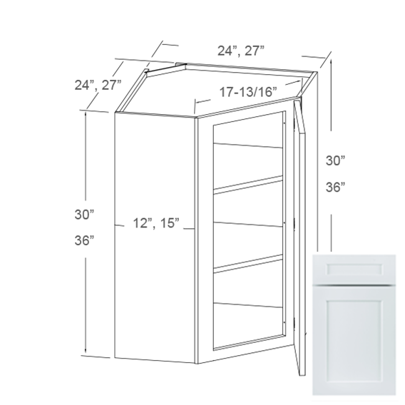 Poshhaus Cabinets Wall Diagonal Corner, Glass Insert - 30"H and 36"H - WMDC2436H / S8 White
