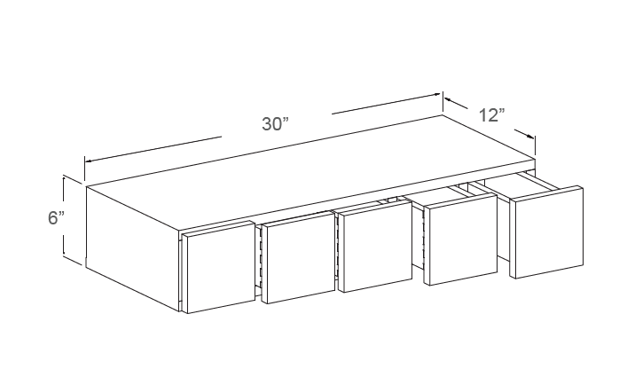 Poshhaus Cabinets S5 Shaker Grey WALL SPICE CABINET - 5 DRAWERS - 30" W X 6" H X 12" D