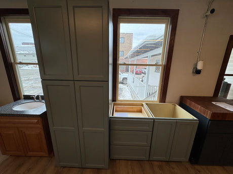 J&K Sage Green 48" Base + 30" Pantry Tower TBD Custom Top TBD C...
